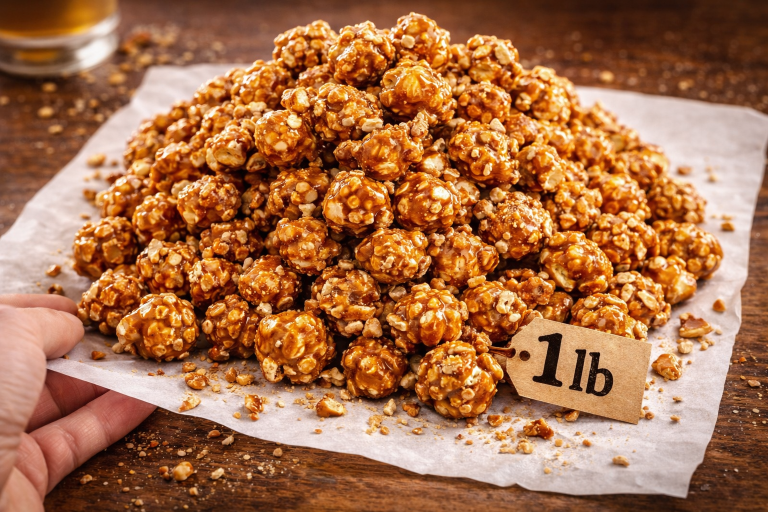 Light, fluffy air-popped popcorn generously coated in our world-famous buttery toffee, finished with freshly roasted almonds. Handcrafted in small batches and sealed in a resealable bag to keep every bite irresistibly fresh.